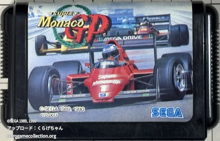 ゲームシステムは、シフトタイプ(7速、4速、AT)選択による難易度調整、ゼロスタートによる予選でのグリッド決定、決勝でのポジションリミット制を採用。走行距離に応じて加算される「D.P.」がスコアとなり、一定以上の獲得でスーパーライセンス取得画面が表示されます。タイトルに「モナコGP」とありますが、コースはオリジナルデザインです。メガドライブ版は『ファミコン通信』でゴールド殿堂入りを獲得しました。