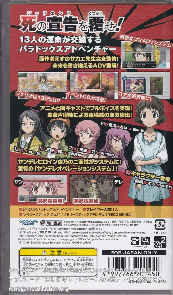 検索ワード: PlayStation Portable 未来日記 13人目の日記所有者 RE:WRITE